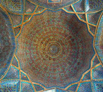 Moon light shine through the window into islamic mosque interior. Ramadan Kareem islamic background. 3d render illustration.